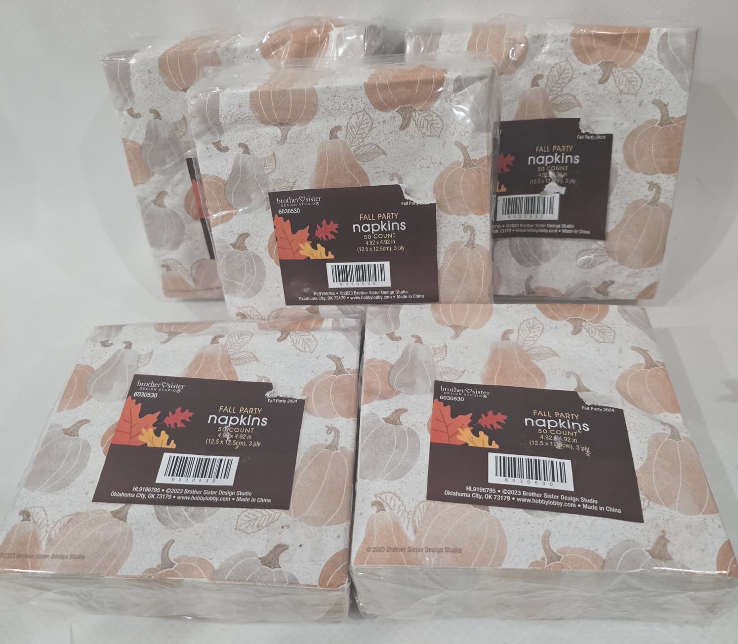 Lot of 5 Fall Thanksgiving Holiday Party Napkins Pumpkin Design 250 Count Total