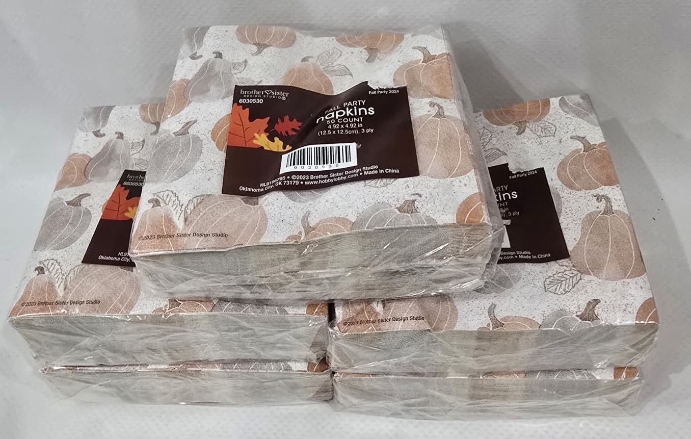 - Lot of 5 Fall/Thanksgiving Holiday Party Napkins Pumpkin Design, 250 Count Total