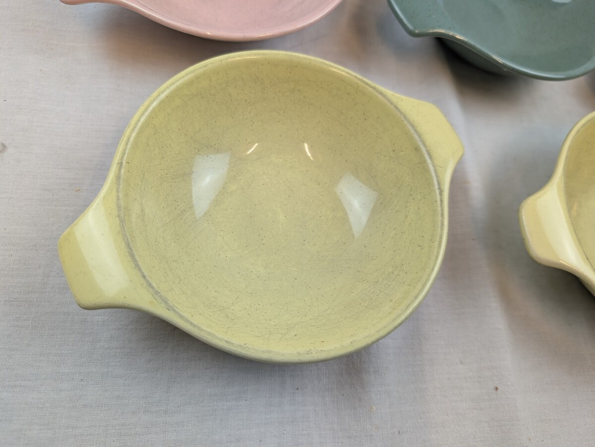 Lot of 5 Vtg Taylor Smith Taylor Pebbleford Lugged Cereal Bowl Teal Pink Yellow