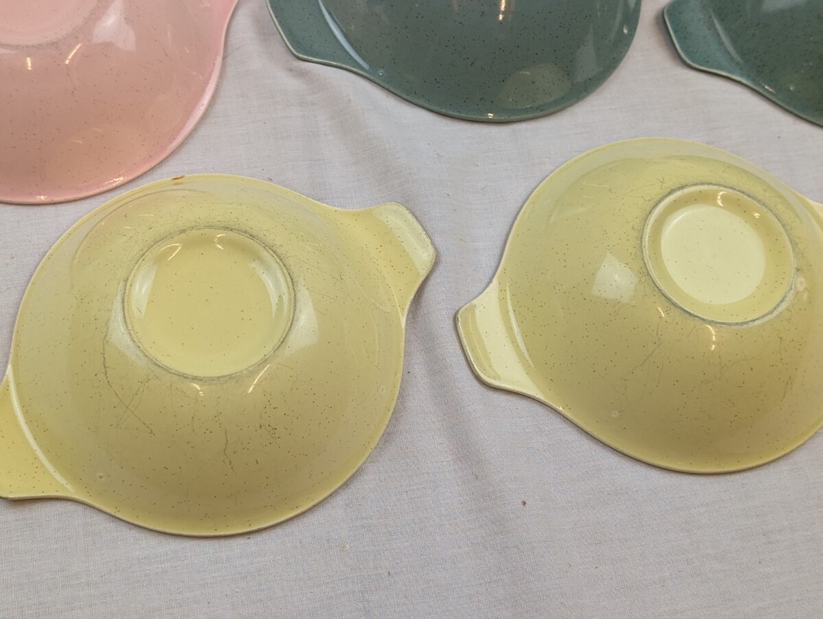 See pics-- they do show some utensil/stacking wear on the insides. But not bad for 60-70 year old bowls
