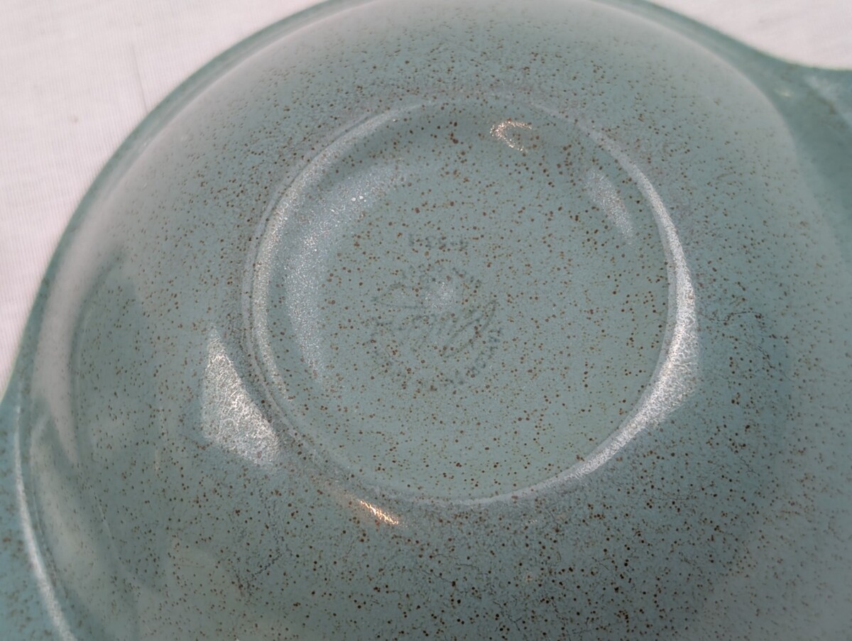The 2 Teal ones are stamped on the bottom. The other 3 dont have a similar stamp but are the same bowl so I'm guessing stamp just wore off??