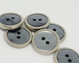 - Lot of 6 VTG Buttons 60s Pearlized Gray with Silver Ridged Edge 2-Hole 1/2 inc
