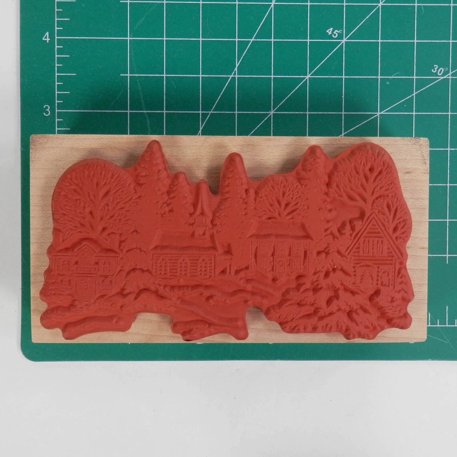 Lot of 6 Wood & Rubber Stamps PSX 1990s Holiday Wreaths House Scene Ivy Leaf