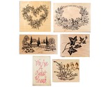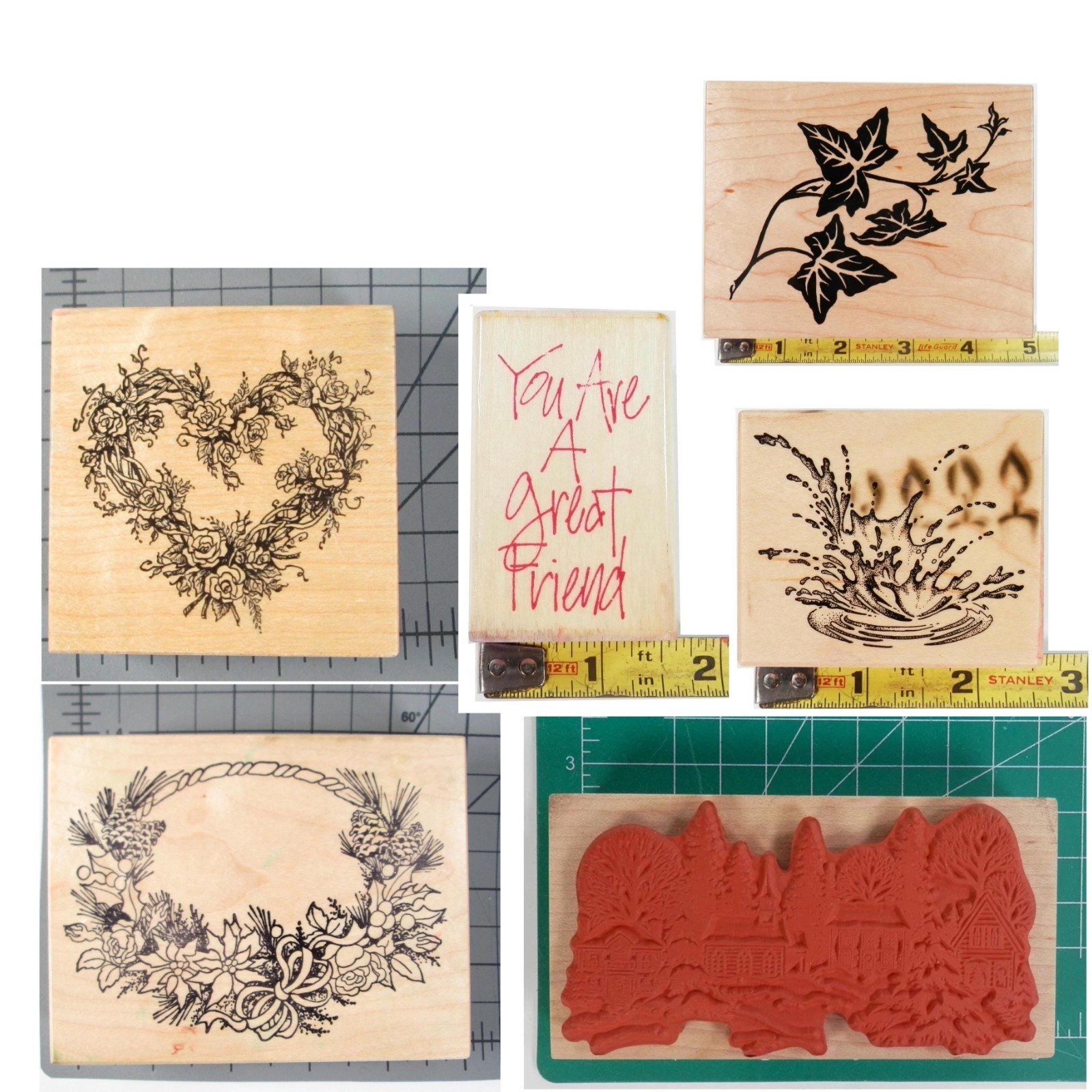 - Lot of 6 Wood & Rubber Stamps PSX 1990s Holiday Wreaths House Scene Ivy Leaf