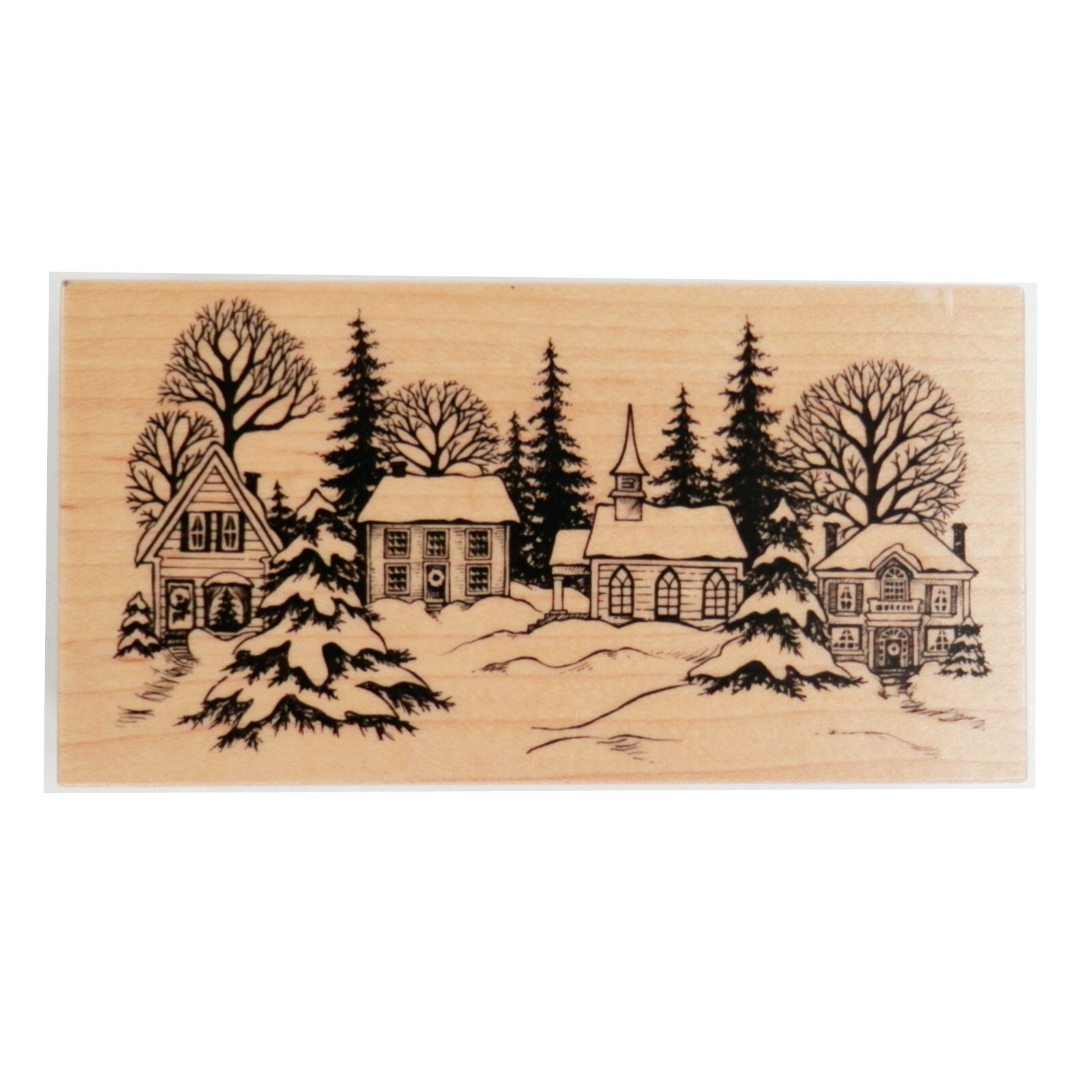 1995 PSX Winter Scene Snow Stamp Pine Tree Holiday Homes Christmas Church
