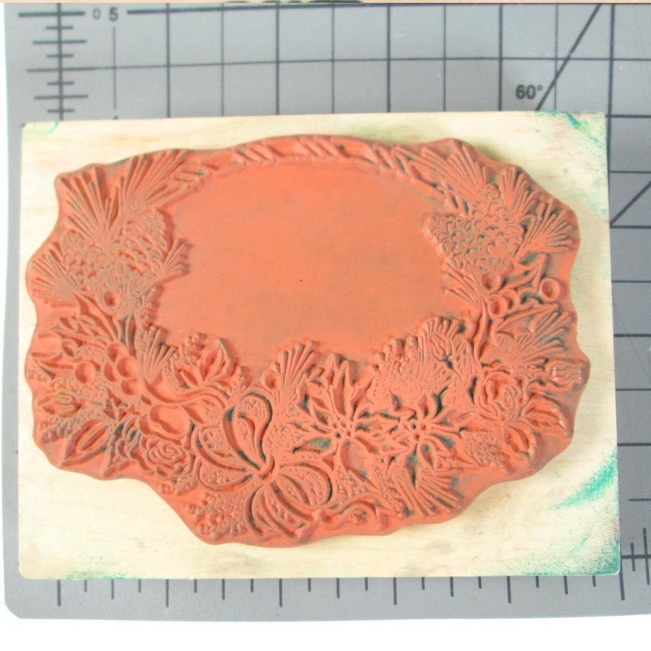 PSX 5" Wood Rubber Stamp Poinsettia Pine Cone Holly Oval Wreath Christmas K386