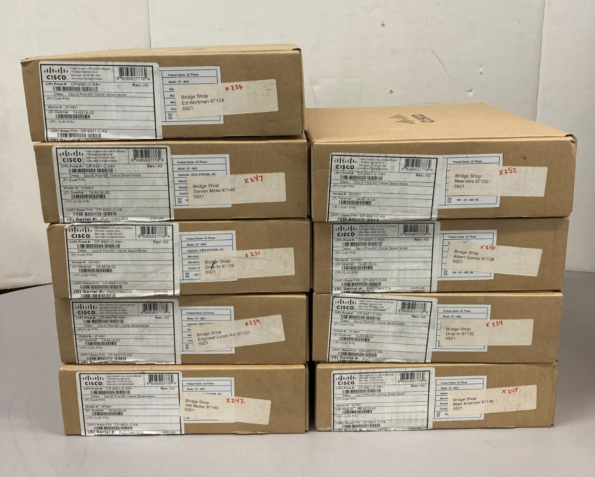 - Lot of 9 Cisco UC Phone 6921 Charcoal w/ Standard Headset CP-6921-C-K9
