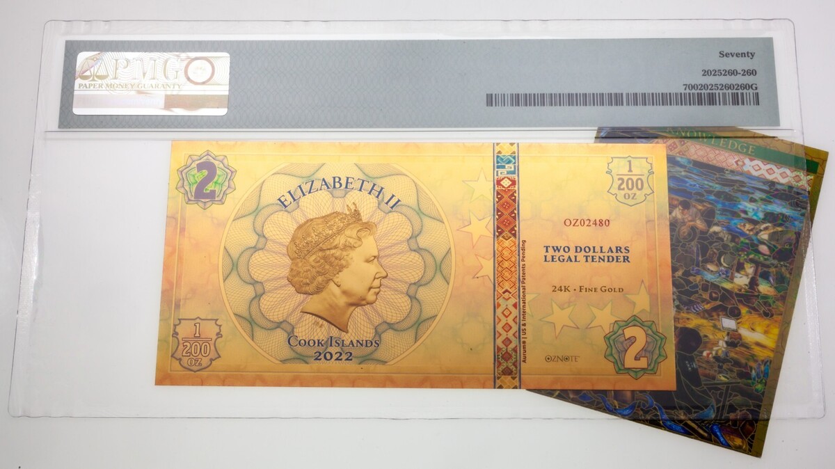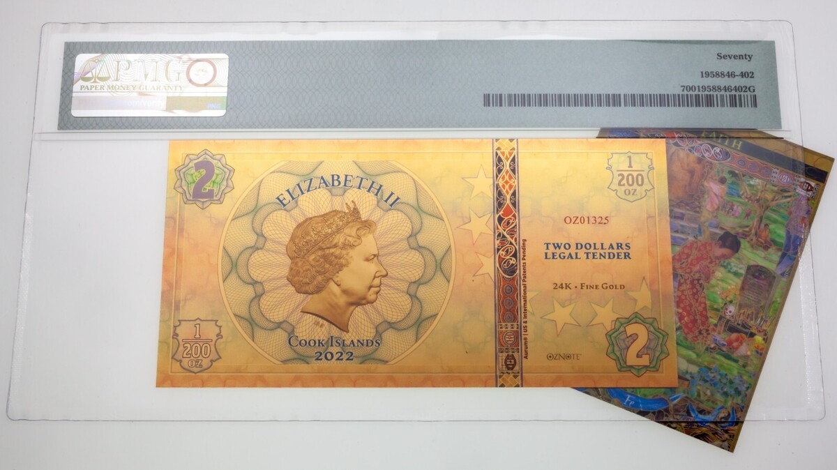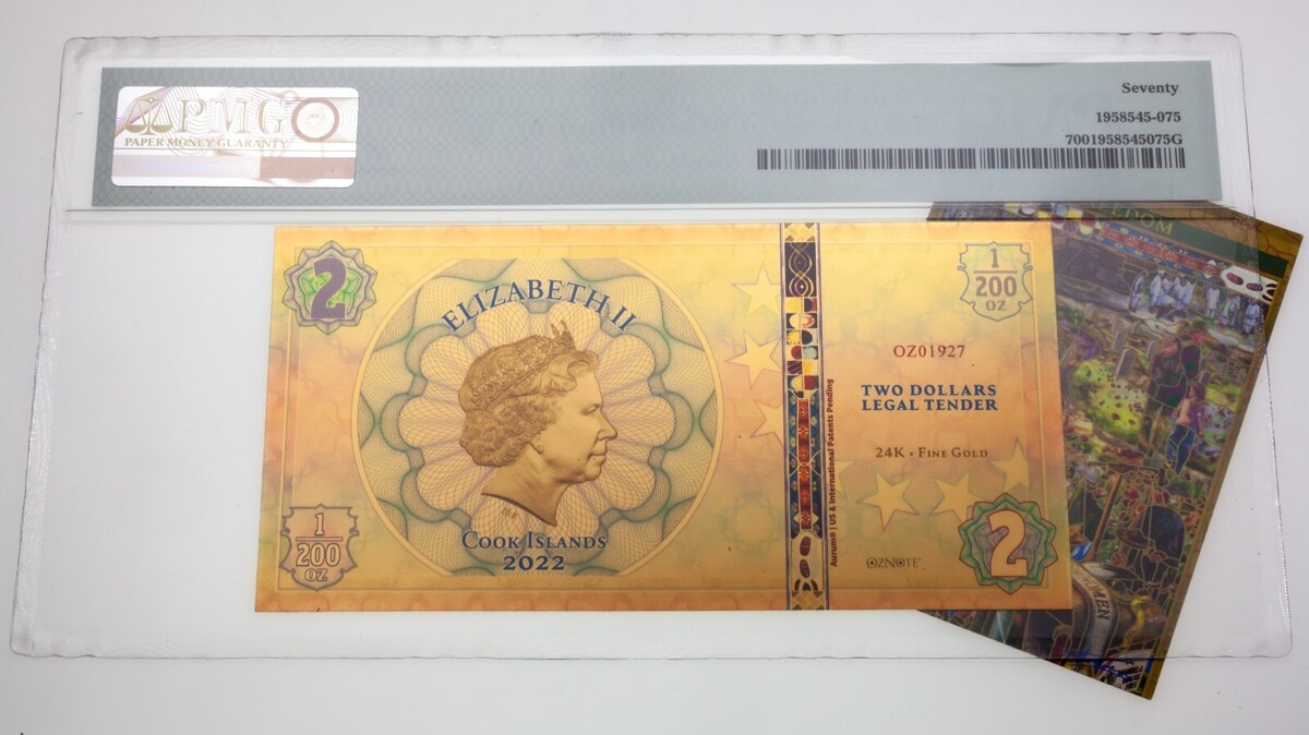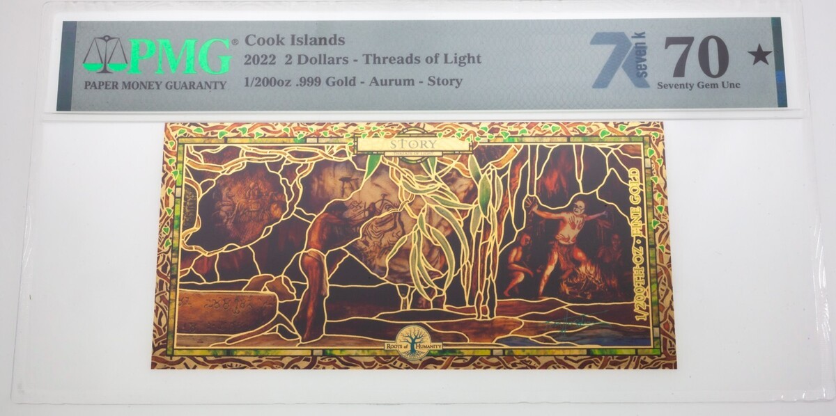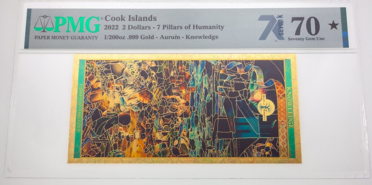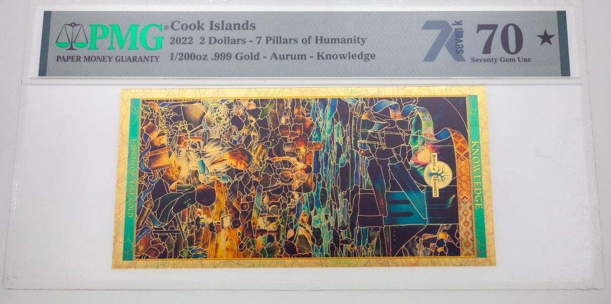 2022 Cocinar Islas Pillars Of Humanity 0.1ml Oro Nota PMG Joya UNC 70