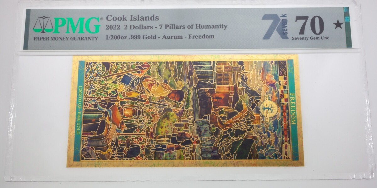 - Lote De 7 Pilares De La Humanidad Billetes De Oro De Las Islas Cook PMG Gem 70