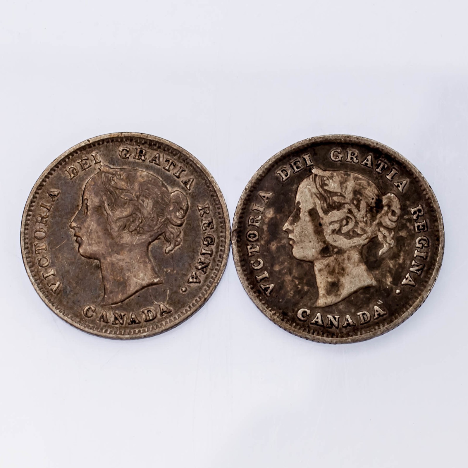 Lot de dos monedas de plata 5c de Canada, incluida 1891 en VF, 1897 en condiciones de XF