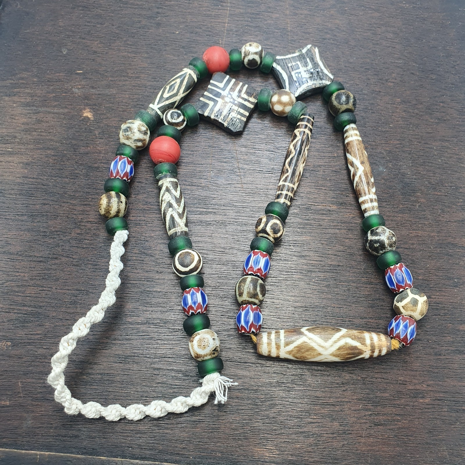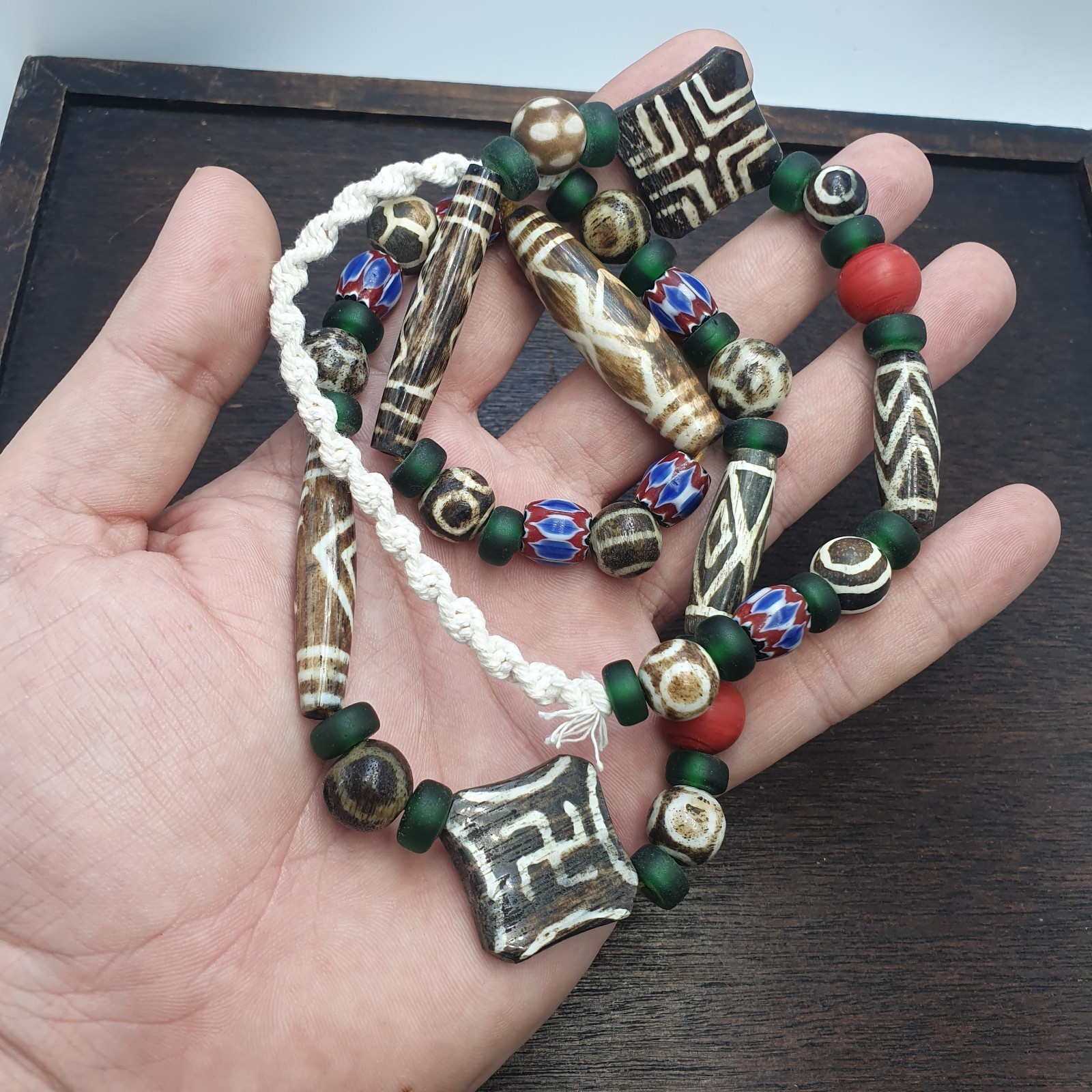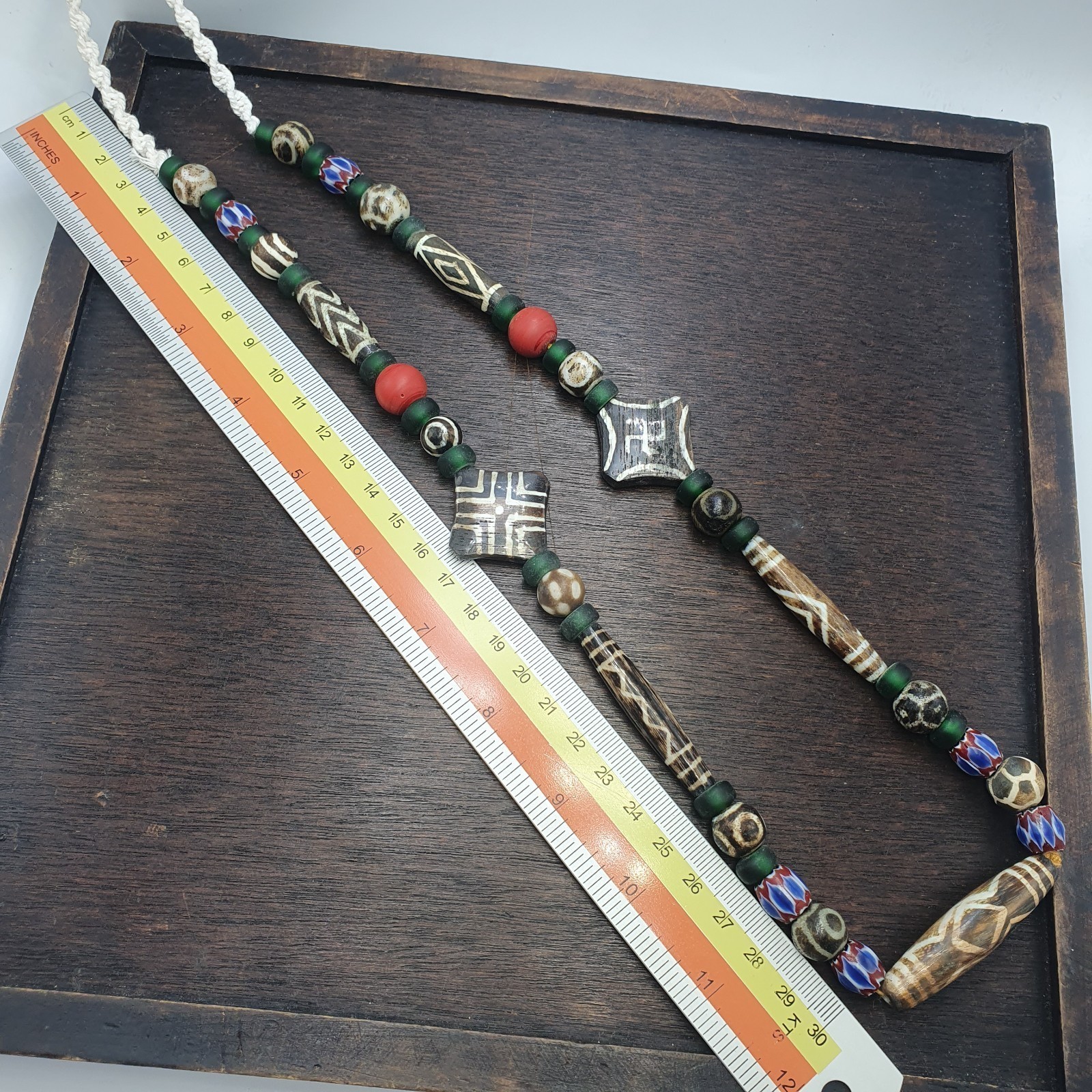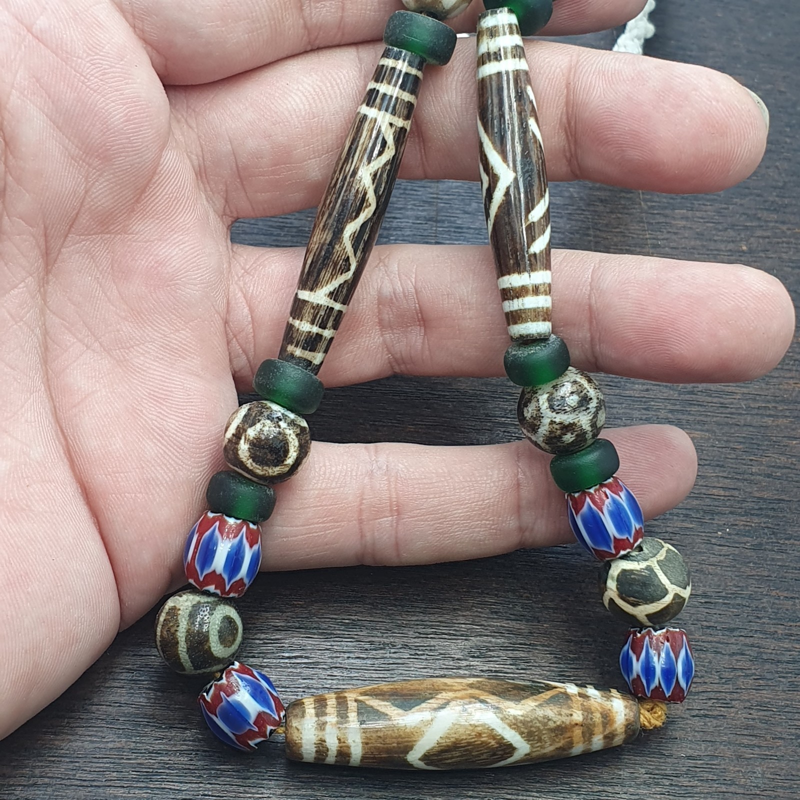 Lotto misto vintage birmano Pumtek e Chevron perle di vetro perline collana...