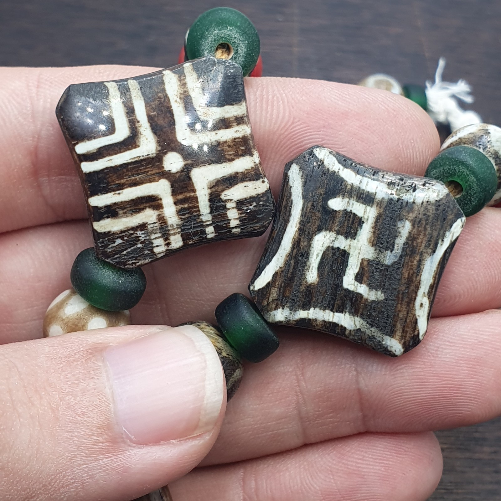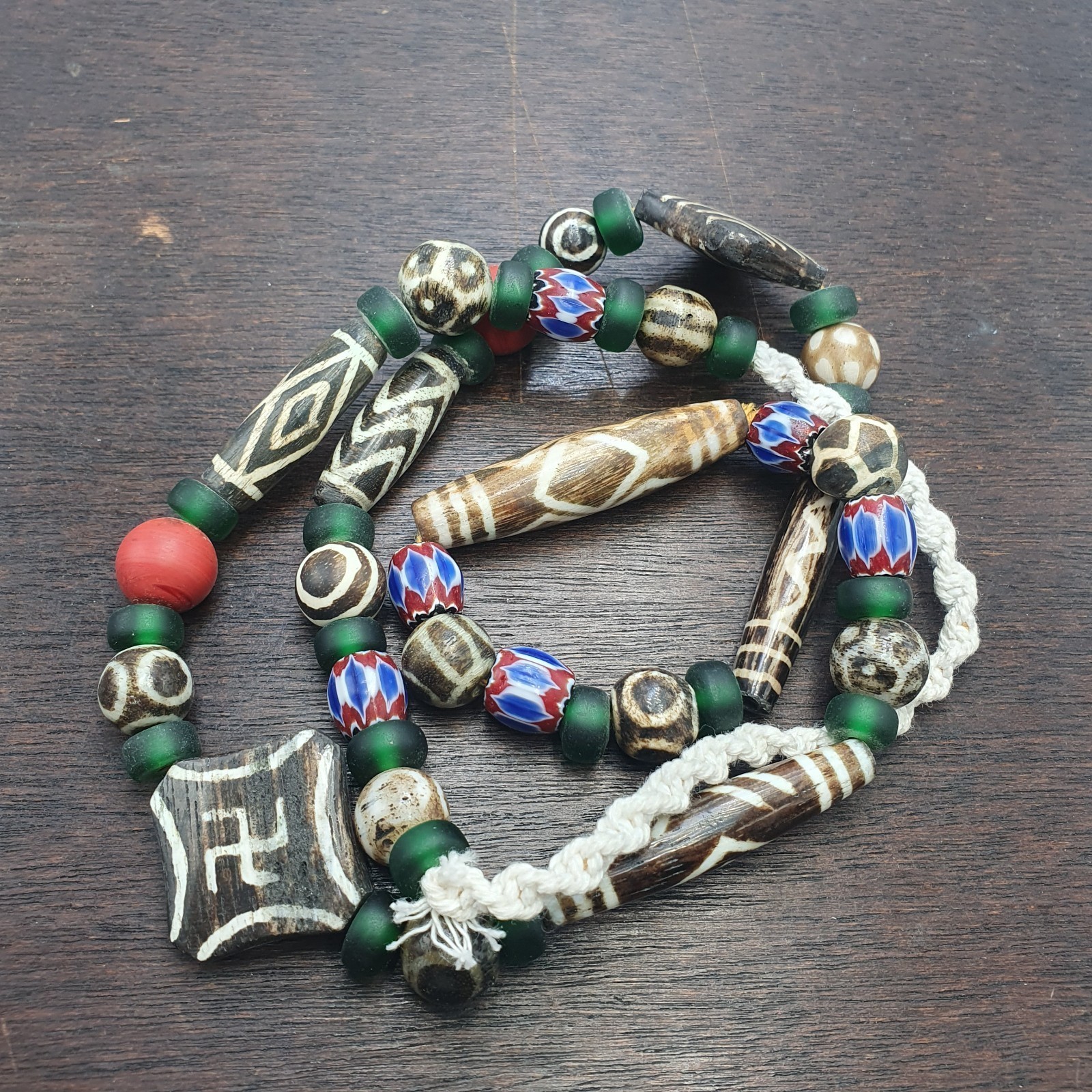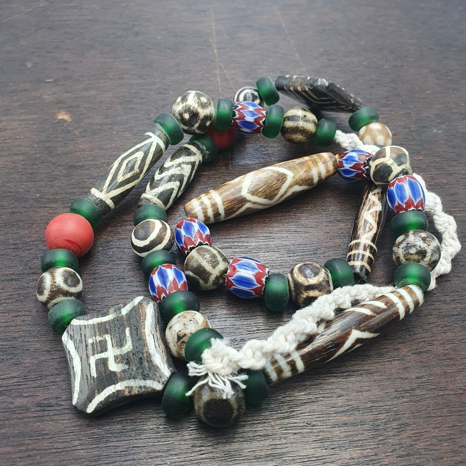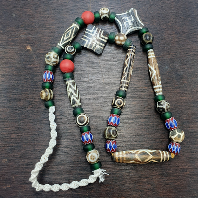 Lotto misto vintage birmano Pumtek e Chevron perle di vetro perline collana...