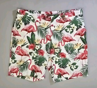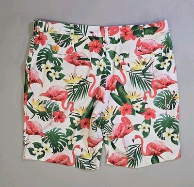 - Loudmouth Golf Shorts 40 Flamingos Tropical Floral White Background 10" Inseam