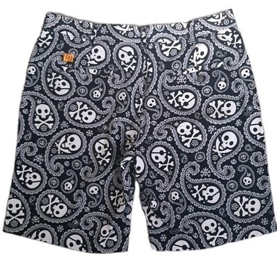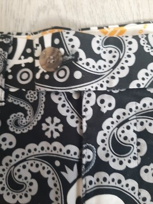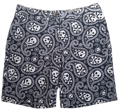 - Loudmouth Golf Shorts~Paisley Skull & Crossbones Black &White Size 38 EUC