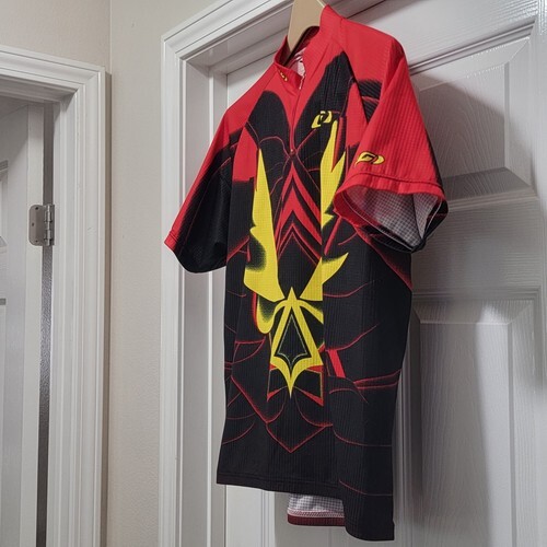 Extremely nice Louis Garneau Black / Red / Yellow Quarter Zip Cycling Jersey. Unreadable size tag, using measurements. Men's Medium. Actual measurements: 40" chest, 27.5" length. 100% polyester, lightweight, pockets on back.