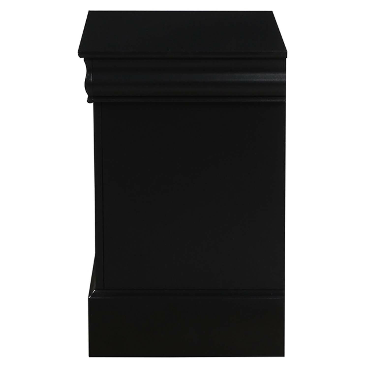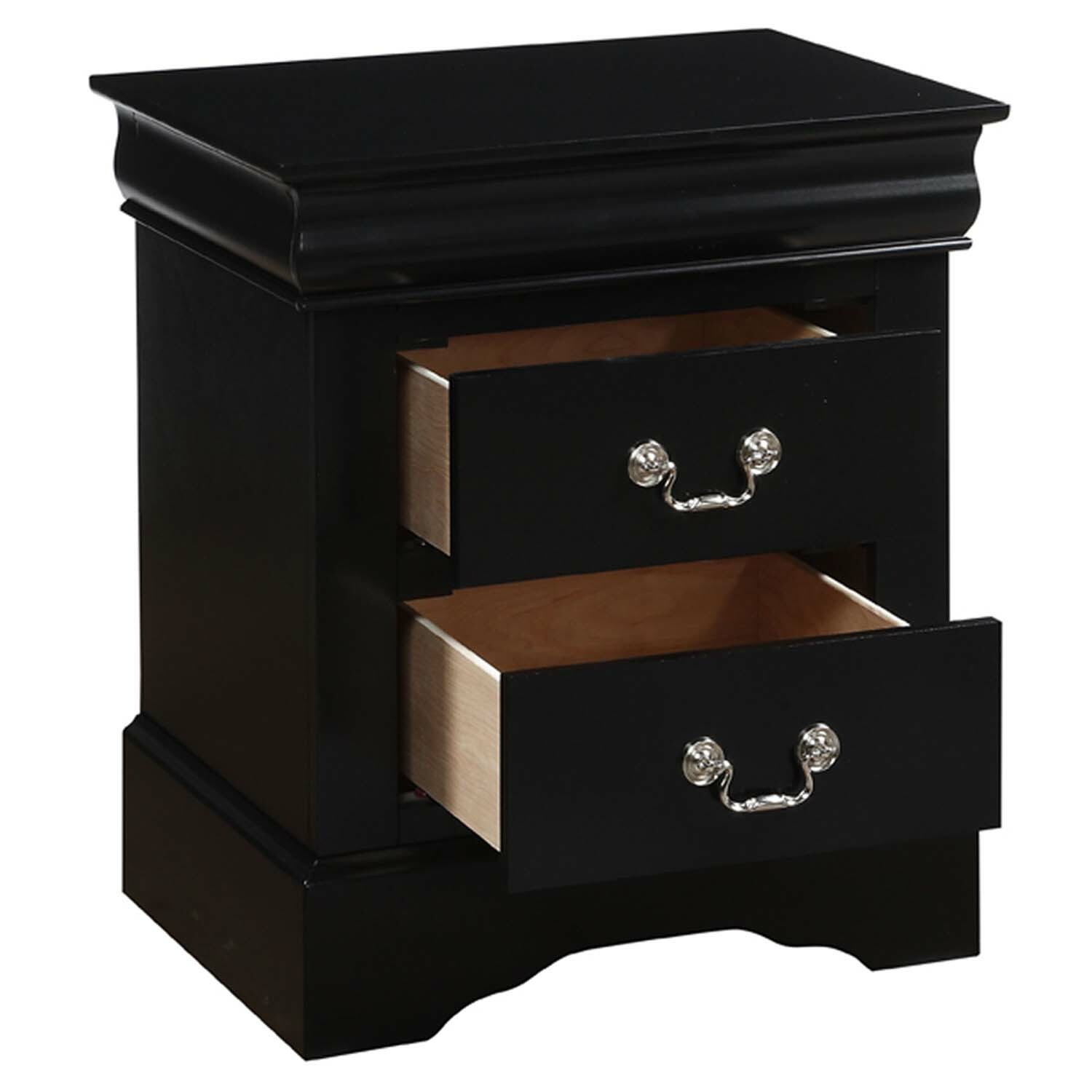 The Louis Philippe III collection nightstand comes in black, cherry, white, and antique gray finish. It has two drawers with center metal glide and brushed nickel metal handle. Offers you plentiful storage with spacious drawers