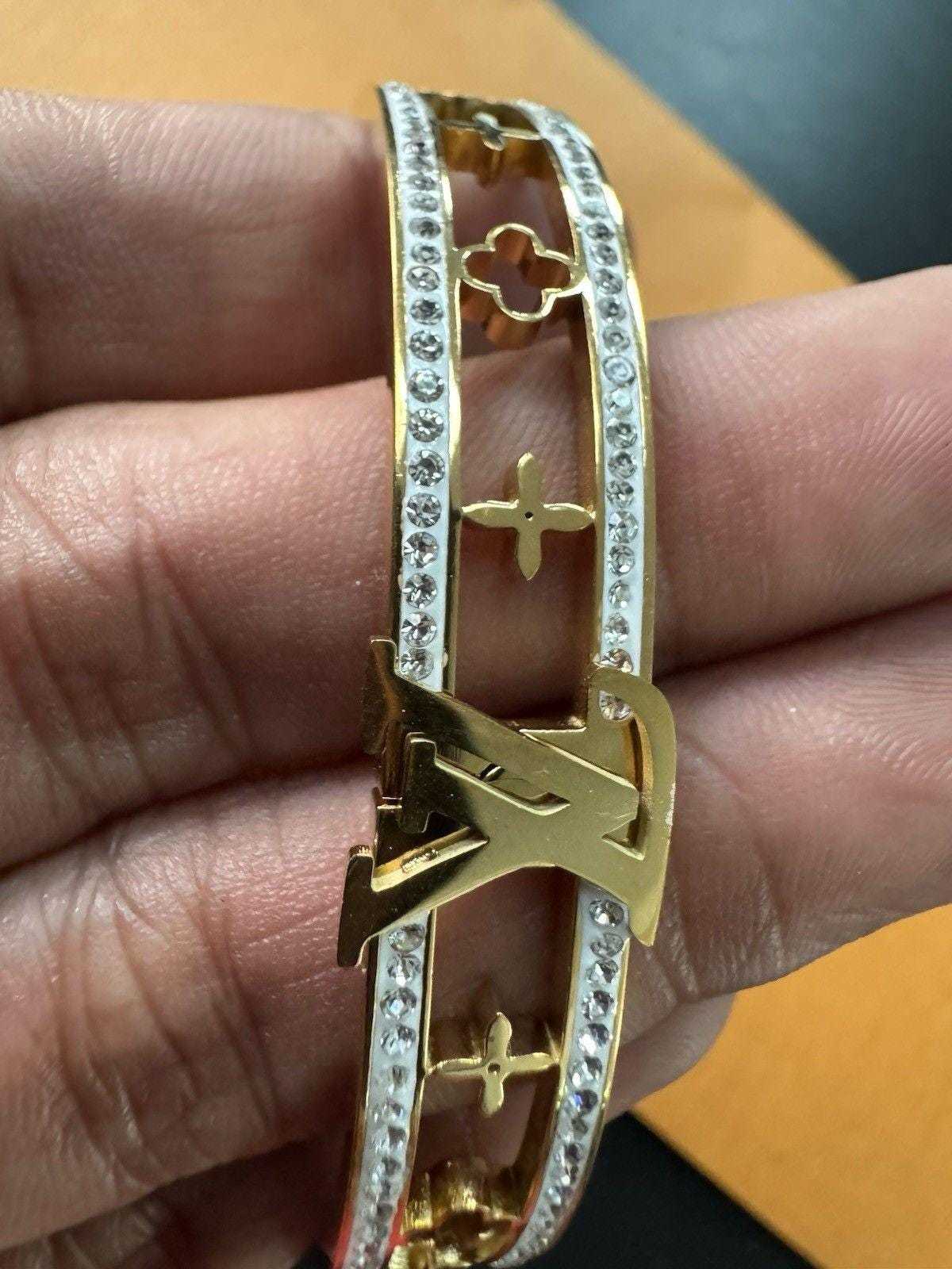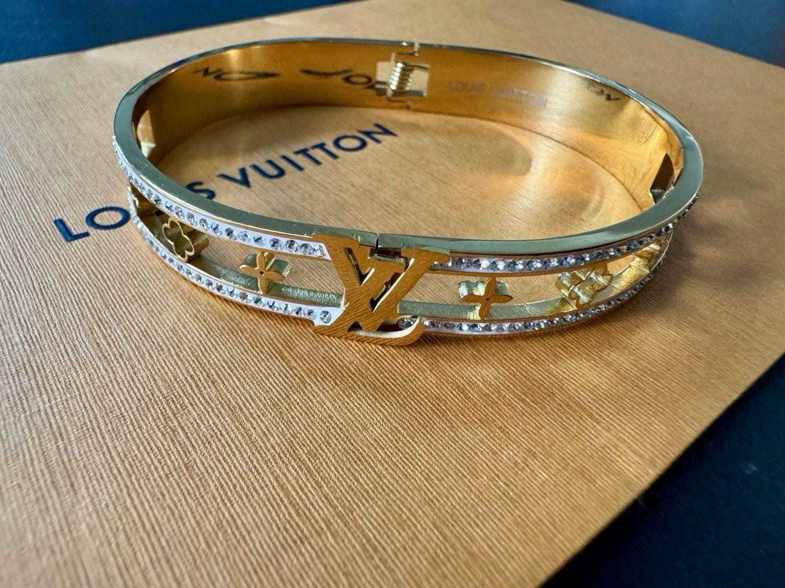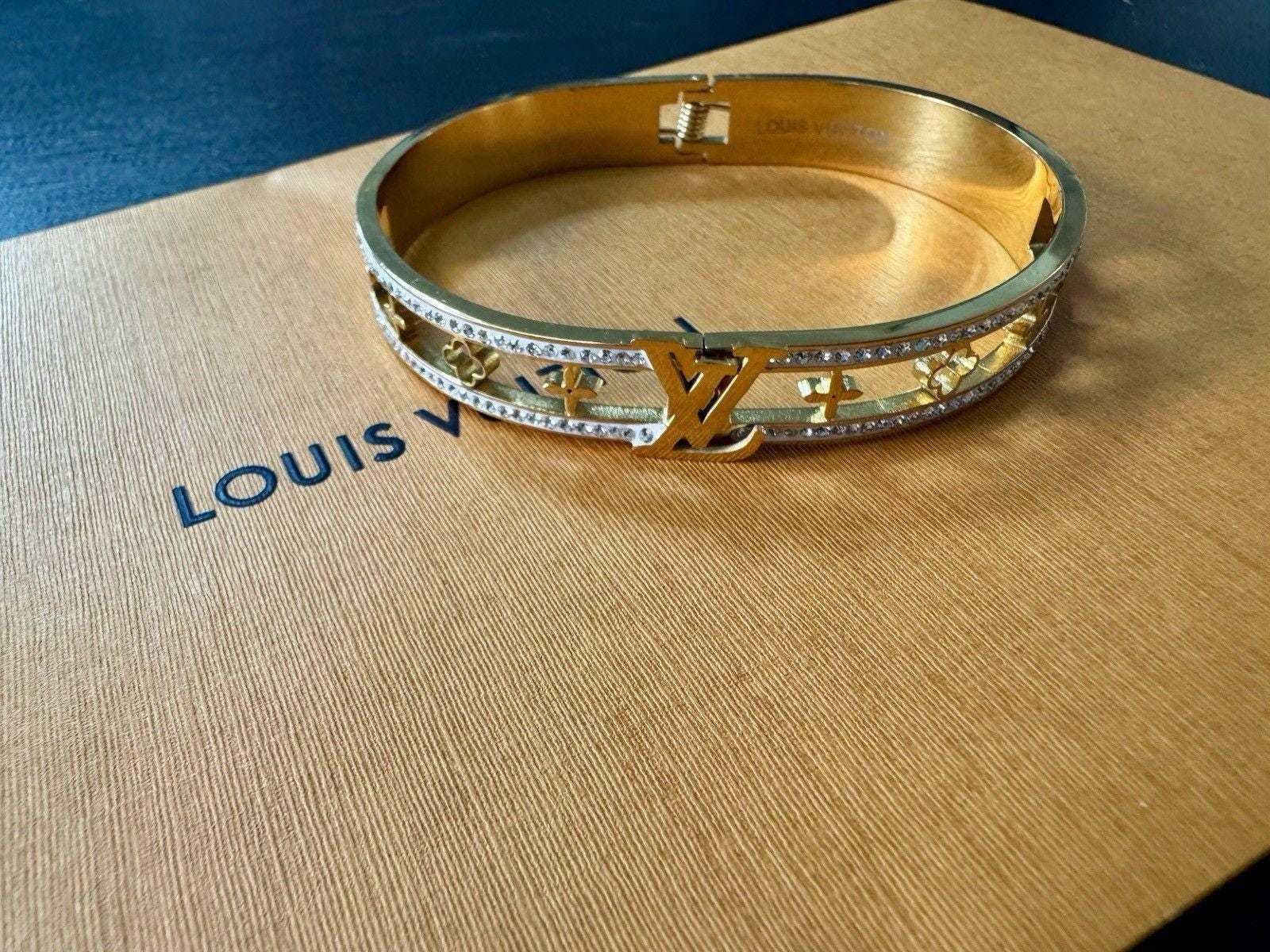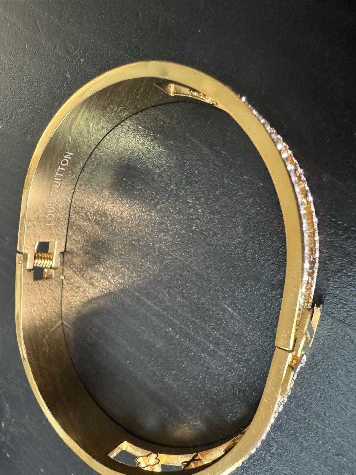 - Louis Vuitton Brushed Yellow Gold Sparkle Monogram Logo Cuff Bangle Bracelet