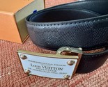 The Louis Vuitton LV Ceinture Inventeur Leather Ivory Damier Graphite 50/125 Belt is a high-end accessory for men, featuring a classic check pattern with gold accents and the iconic LV logo. Made of luxurious leather with a stainless steel buckle, this vintage-inspired belt exudes a Western and dressy style. With a width of 3.5cm and a size of 50cm, it is a versatile piece that can add a touch of sophistication to any outfit. Made in Italy, this belt is a must-have for those who appreciate luxury fashion.