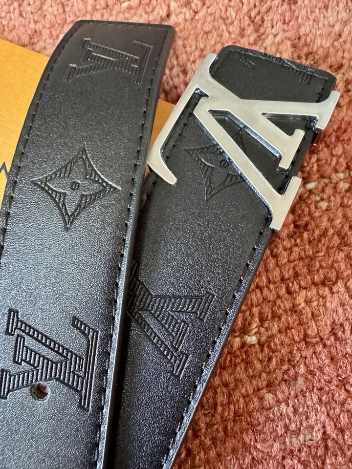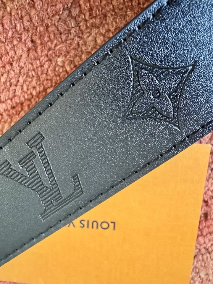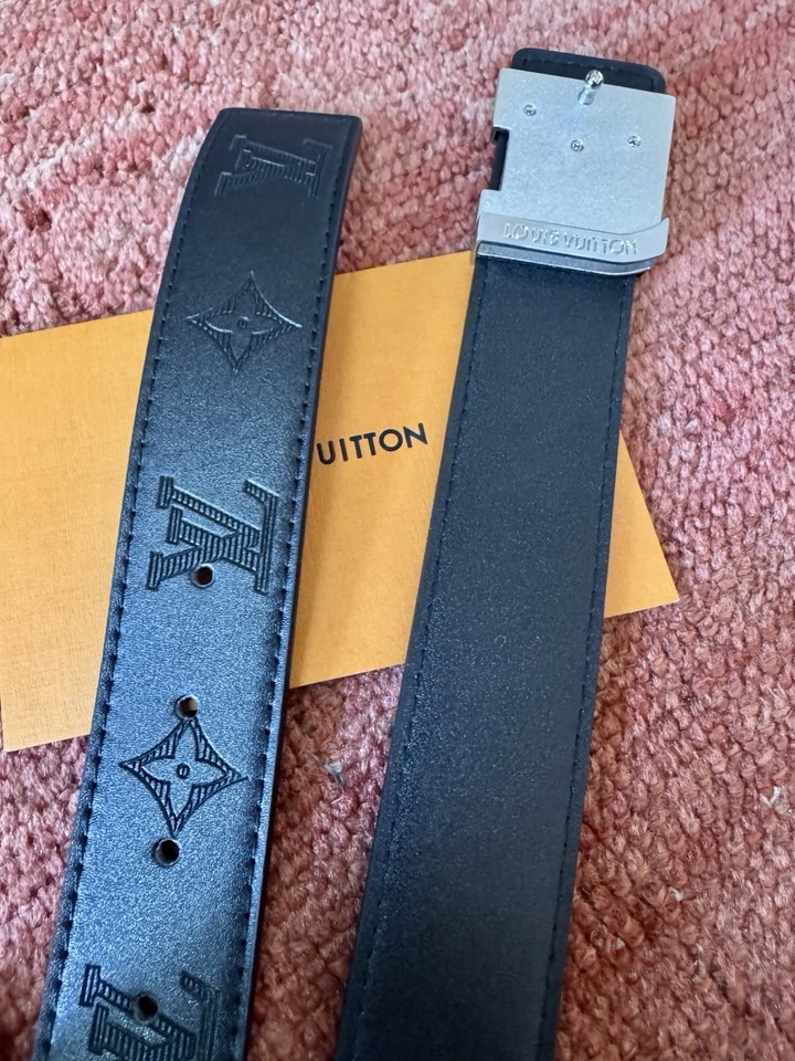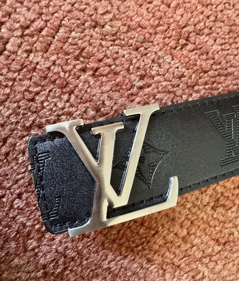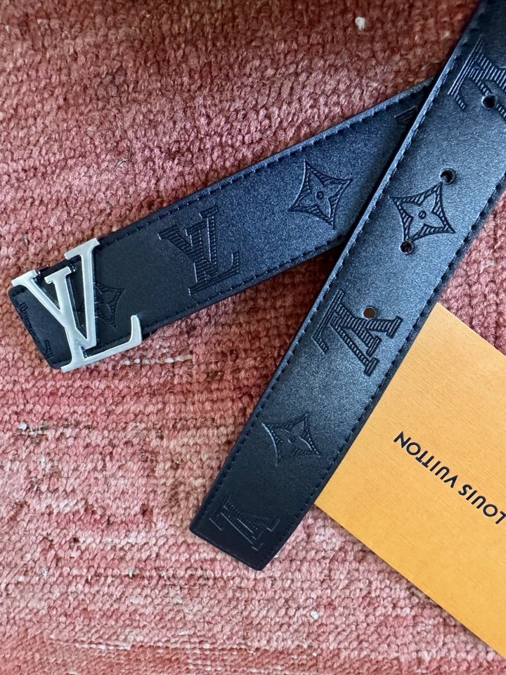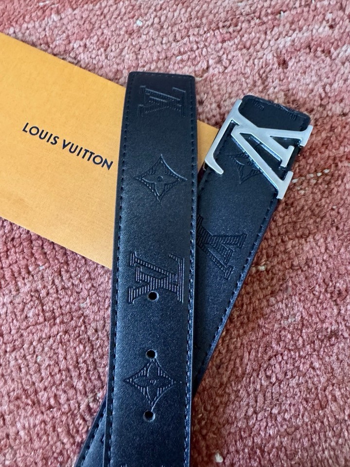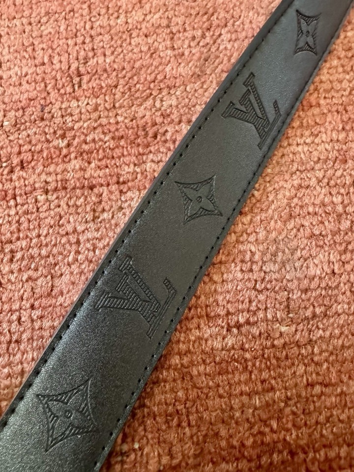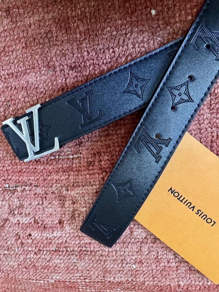- Louis Vuitton LV Santule Black Embossed Monogram Silver Buckle 50/125 Belt