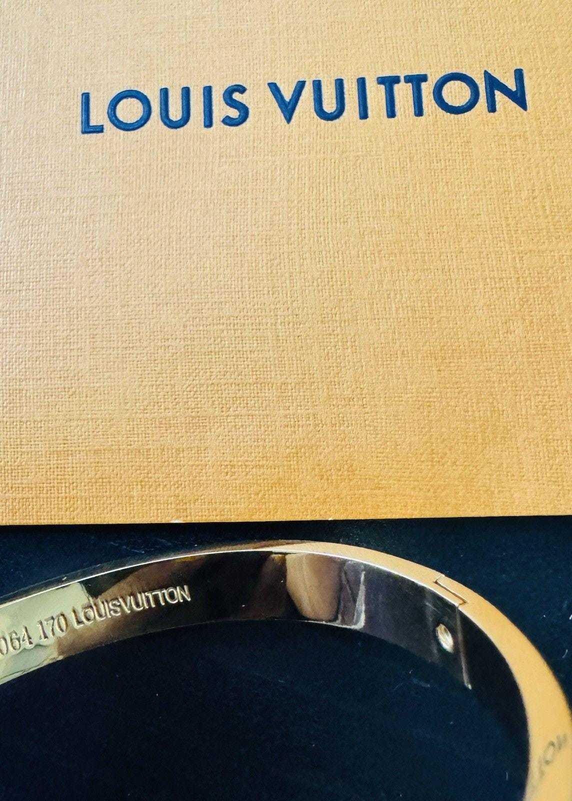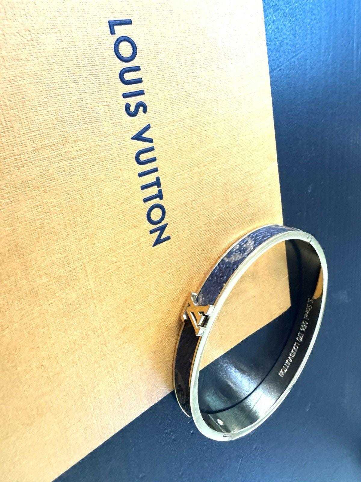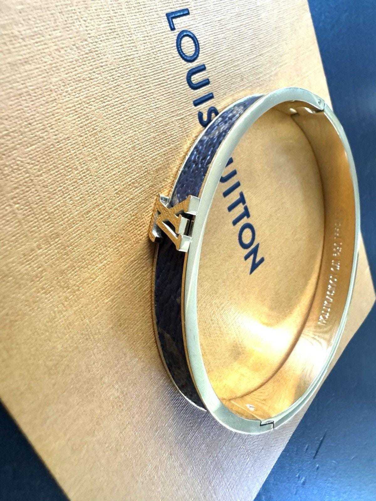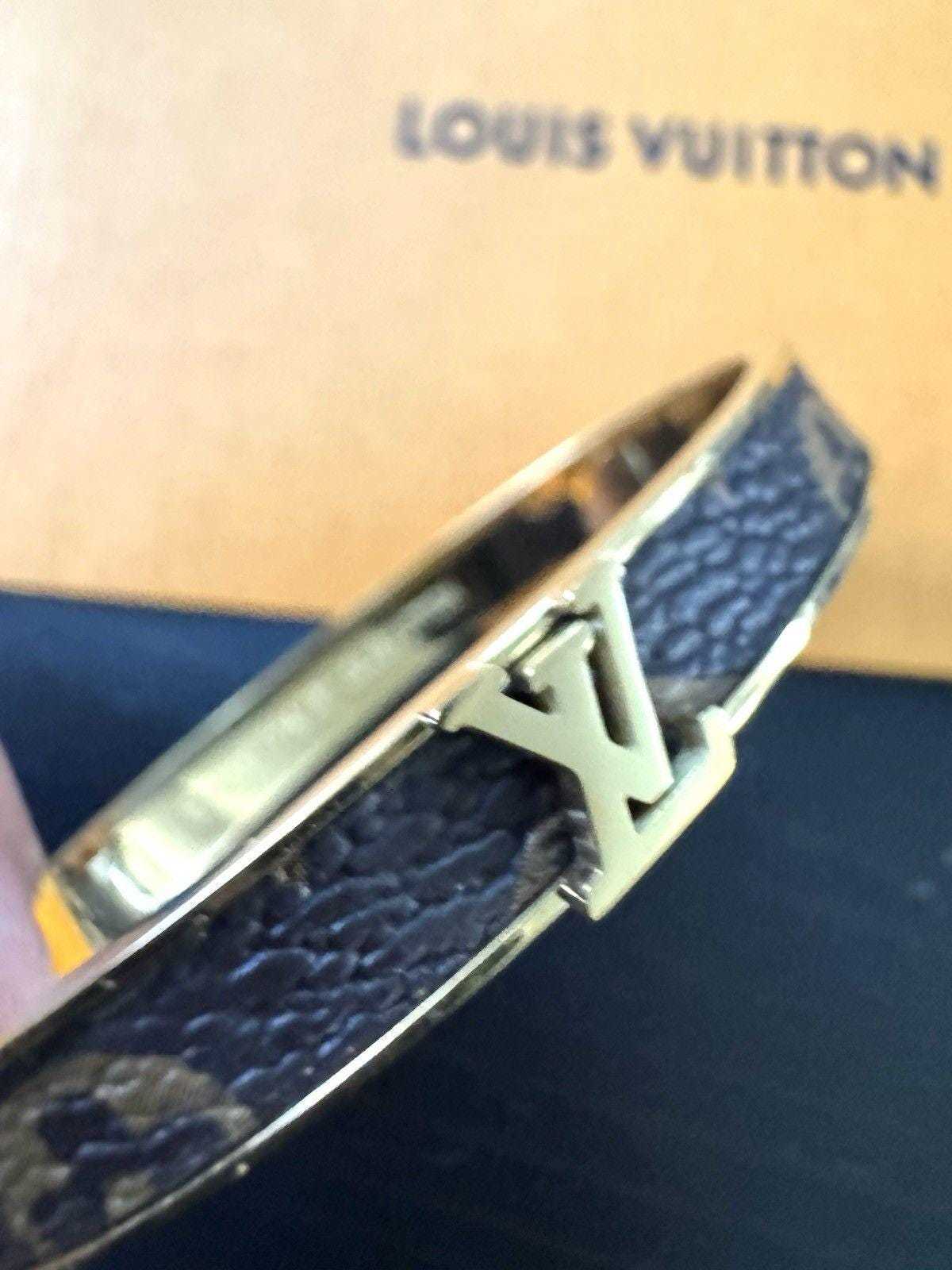 - Louis Vuitton Monogram Signature Canvas Bangle Bracelet with Gold LV Logo