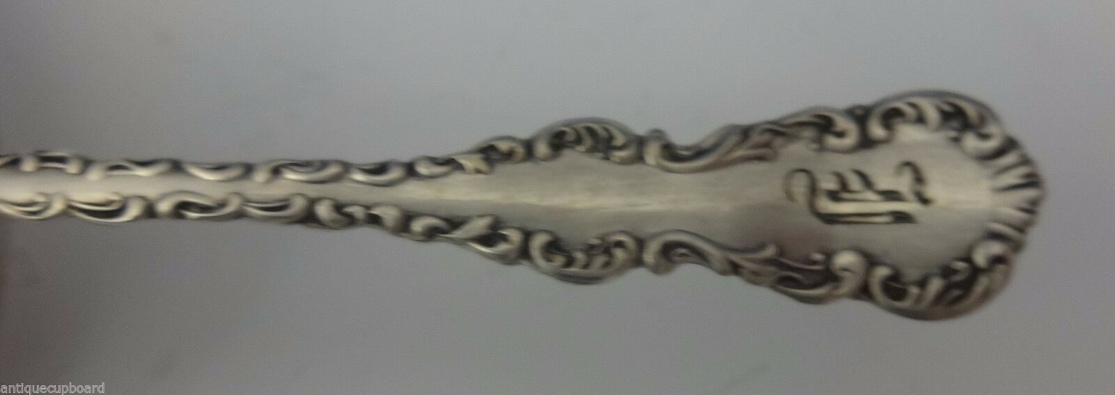Charming Louis XV sterling silver ramekin cup holder. It was made by Roden Brothers of Canada (they made a pattern similar to Whiting). The piece comes with porcelain insert, it has a vintage monogram (see photo), and it dates from 1890's-1900. The measurements for the ramekin cup holder are 1 1/4" tall, 5 1/2 long, and with the liner weighs 2.2 ozt. It is in excellent condition. Wonderful! SKU#0476.