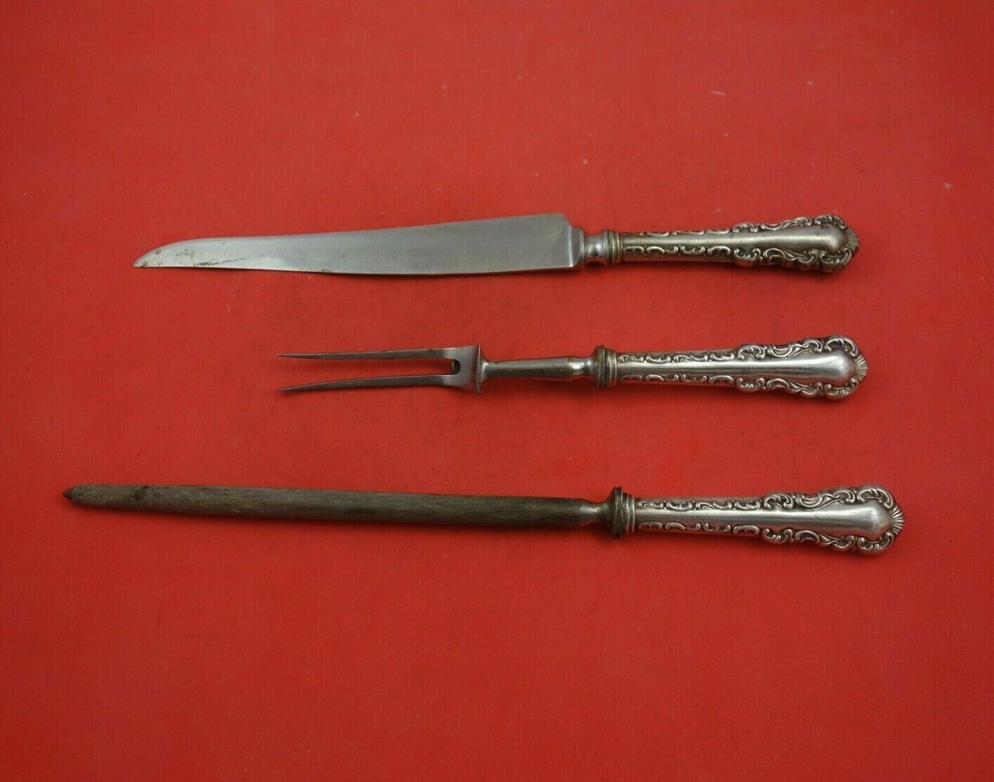 - Louis XV by Roden Canadian Sterling Silver Steak Carving Set 3pc HH WS Heirloom