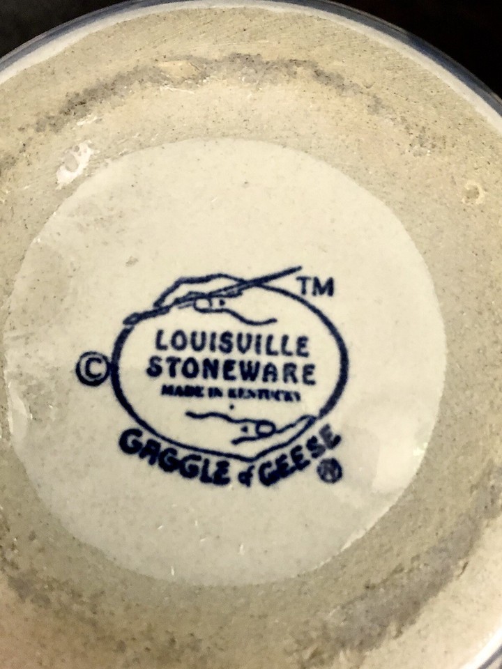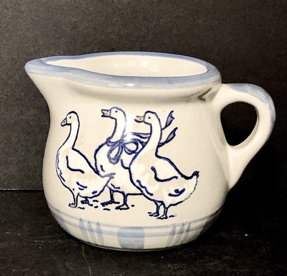 - Louisville Stoneware Gaggle of Geese CREAMER 20 oz Pottery Ducks Blue White USA