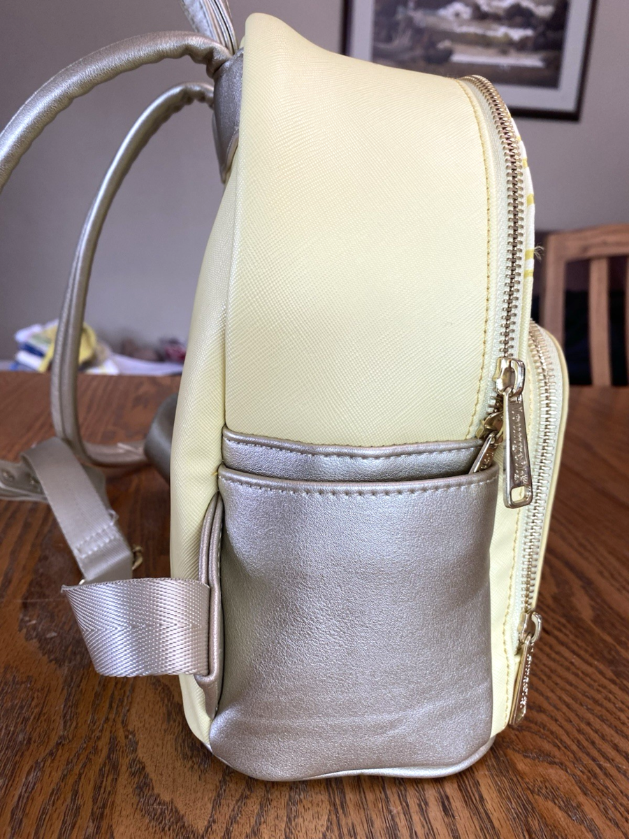 The Loungefly Disney Beauty and the Beast Belle's Dress Mini Backpack is a stylish and whimsical accessory for women who are fans of Disney's Beauty and the Beast. Made of polyurethane with a gold handle/strap color, this mini backpack features a zip closures and showcases the iconic Belle character design. The exterior and lining colors are both yellow, adding a pop of brightness to the overall look. Perfect for carrying your essentials while showing off your love for the beloved Disney movie.