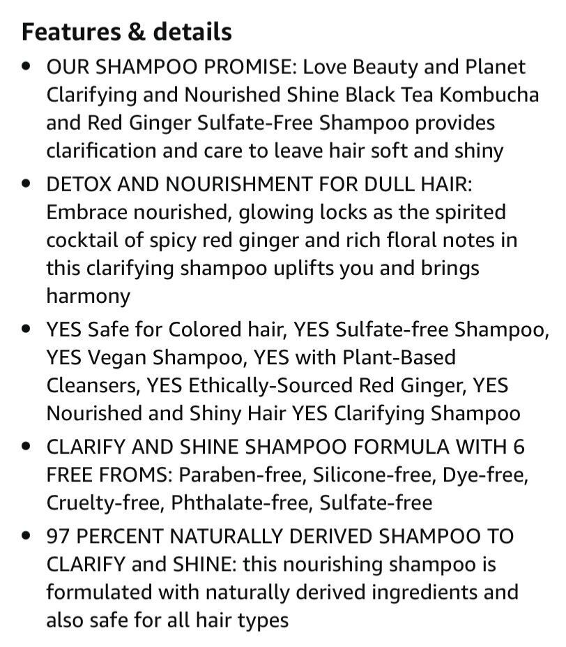 - Love Beauty And Planet Conditioner Detox & Nourish, Black Tea & Ginger. 32 fl oz