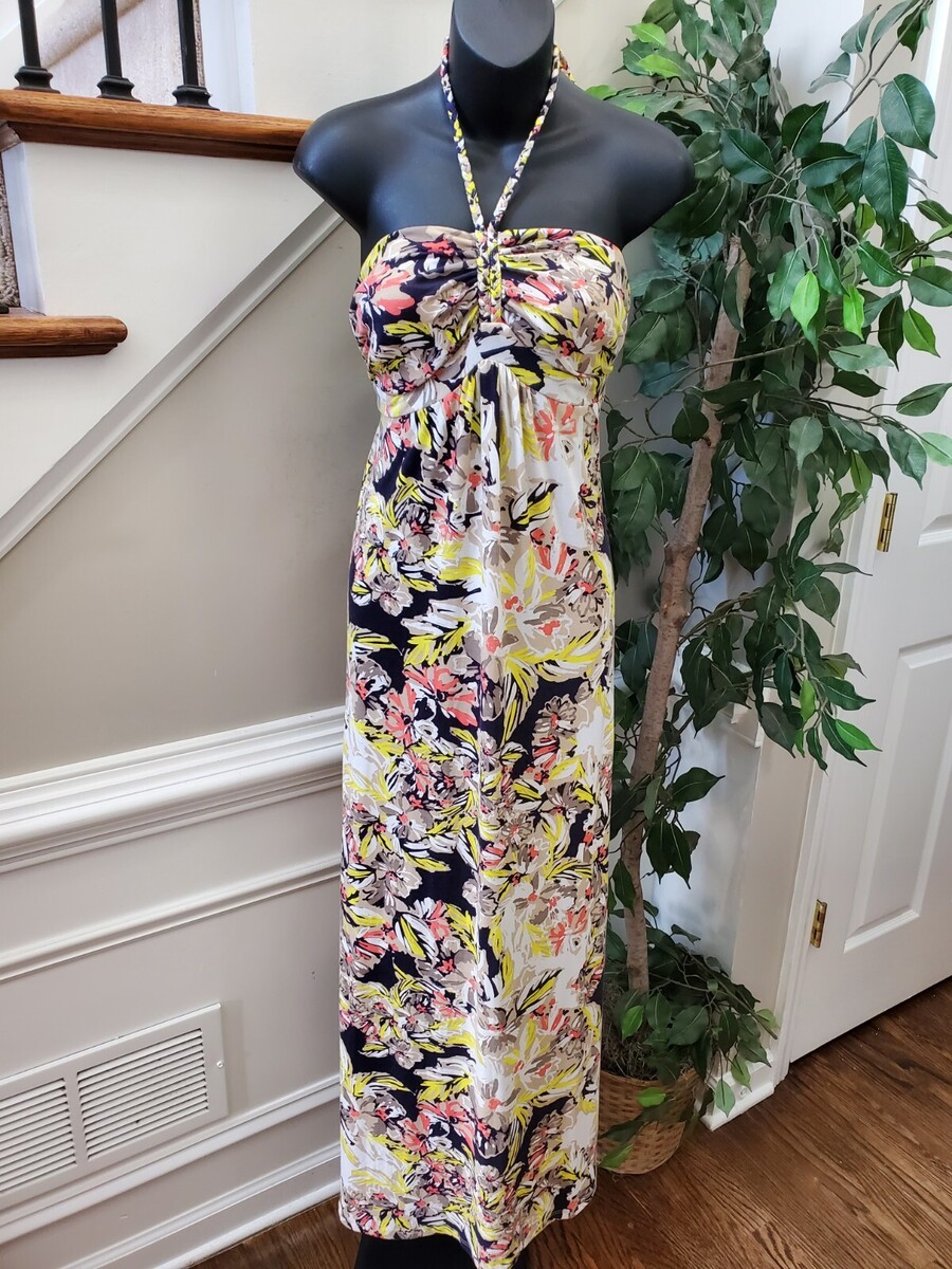 Love Fire Women's Floral Polyester Halter Neck Sleeveless Long Maxi Dress Size S.