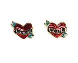 - LOVE HEART EARRINGS Classic Tattoo Style Valentines Day Stud Post Gold Enamel