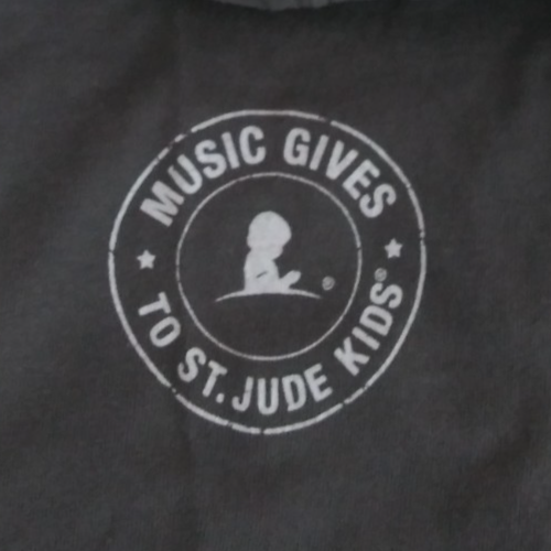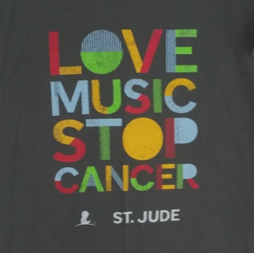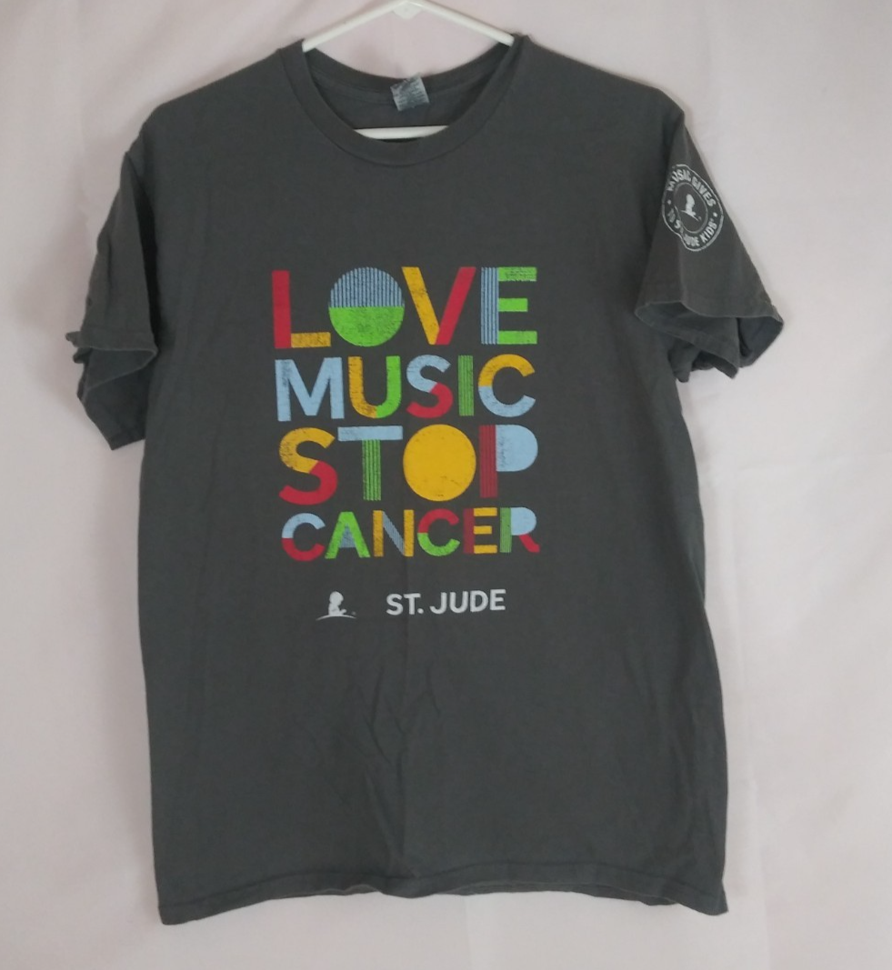 This is for a Love Music Stop Cancer St. Jude Charity Men's Gray T-Shirt Size Medium.
