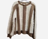 - Loveriche Fuzzy Knit Sweater Womens Oversized Small Brown Cream Cozy Y2K