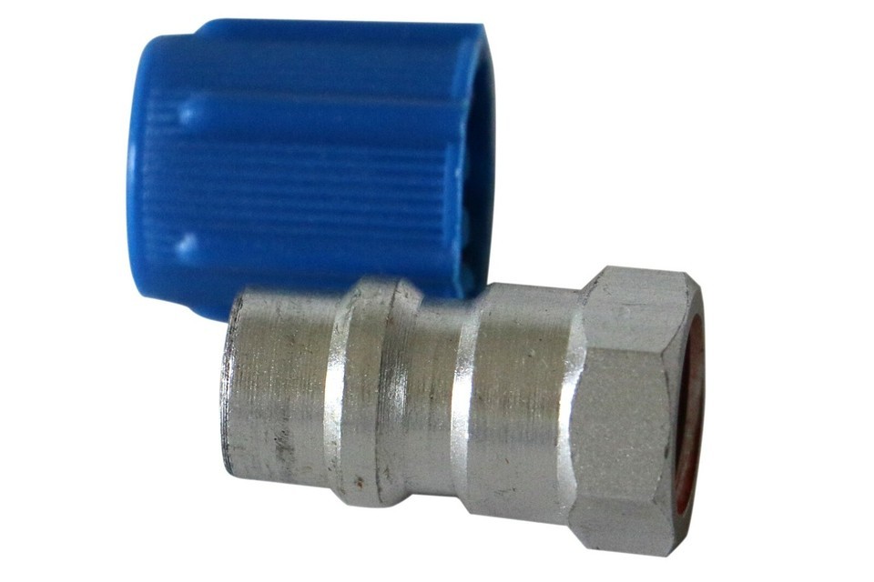 If you have problems with the low side leaking, the fitting it too tight. Raise the schrader valve up to stop the flow of refrigerant.