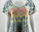 - LuLaRoe Classic Top Size Medium Southwestern Aztec Print Pink Blue Yellow Tee
