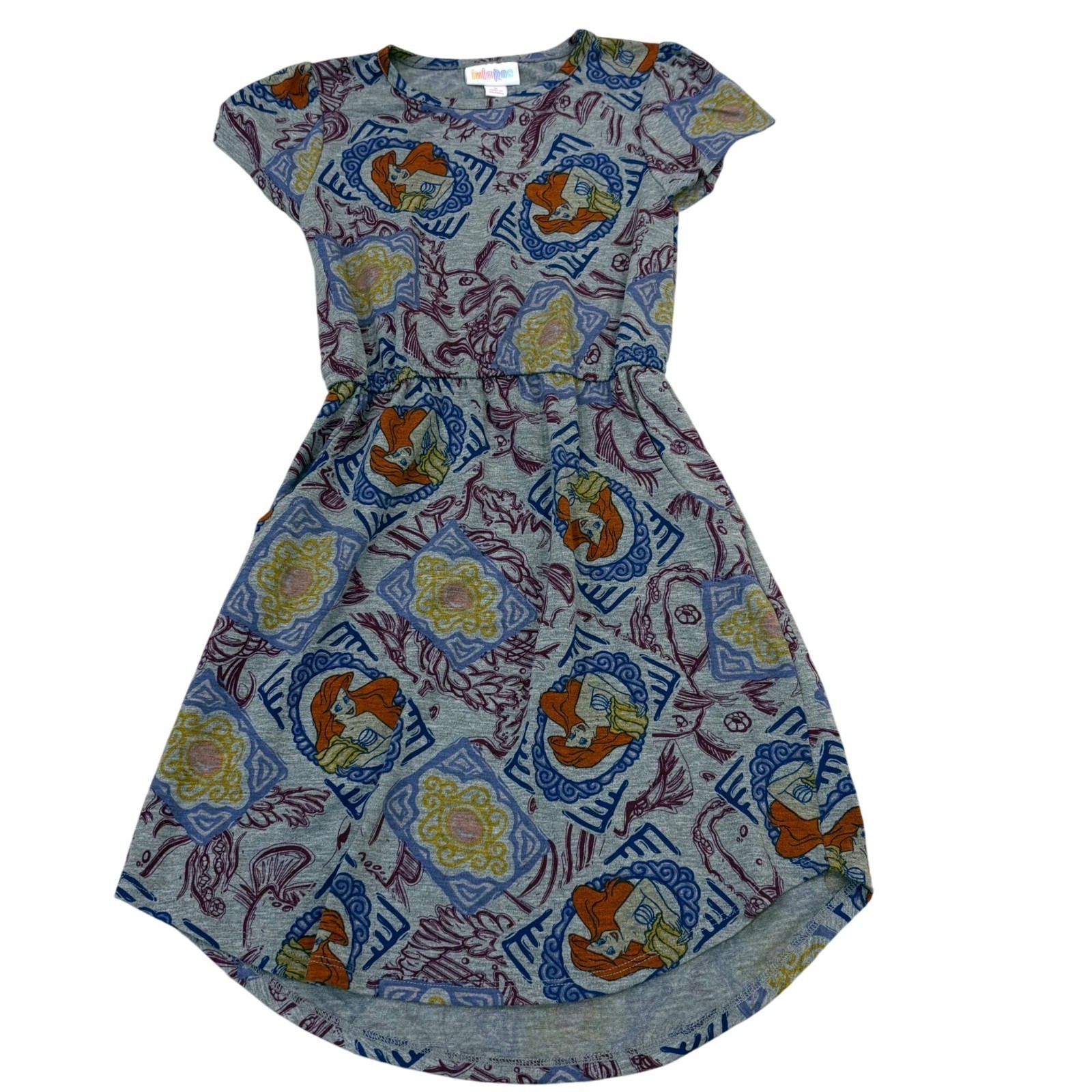 LuLaRoe Girls Mae Disney Princess Ariel Dress Size 8 Gray Short Sleeve