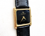 The Lucien Piccard 18K Yellow Gold Natural Diamond Woman Wristwatch is a luxurious timepiece designed for women. Featuring a vintage appeal, the watch has a gold bezel and case, with a black bracelet and dial. The bezel is adorned with a diamond, adding an elegant touch to the overall design. This analog wristwatch exudes sophistication and style, making it a stunning accessory for any outfit.