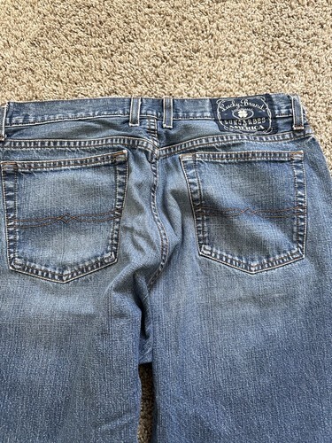 - Lucky Brand Jeans Mens Size 34 Blue Denim Dungarees Classic Fit Flawed