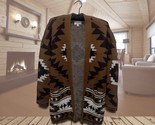 - Lucky Brand Open Front Cardigan XS Boho Aztec Knit Sweater Brown Long Pockets