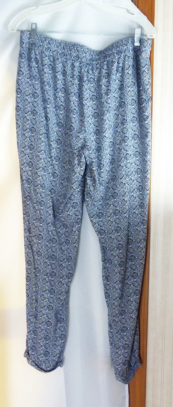 Lucky Brand Women's Lounge Pants Size M - Blue Floral - Sleep Pants - Joggers. Inseam is 28". 1" Cuff on bottom of leg. Elastic Waistband measures 34" before stretching. Drawstring for better fit. Very Good Condition - See Photos for further description.