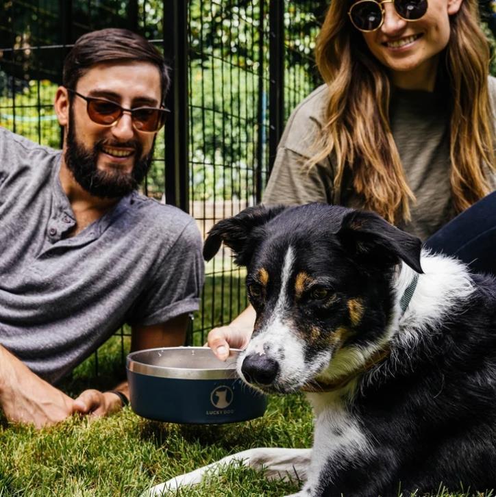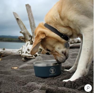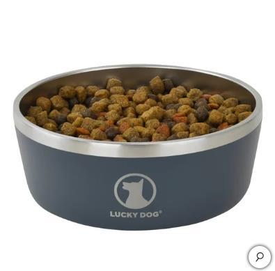- Lucky Dog Stainless Steel Dog Bowl Navy Blue 2-Pack Indulge 5 Non-Slip BPA Free