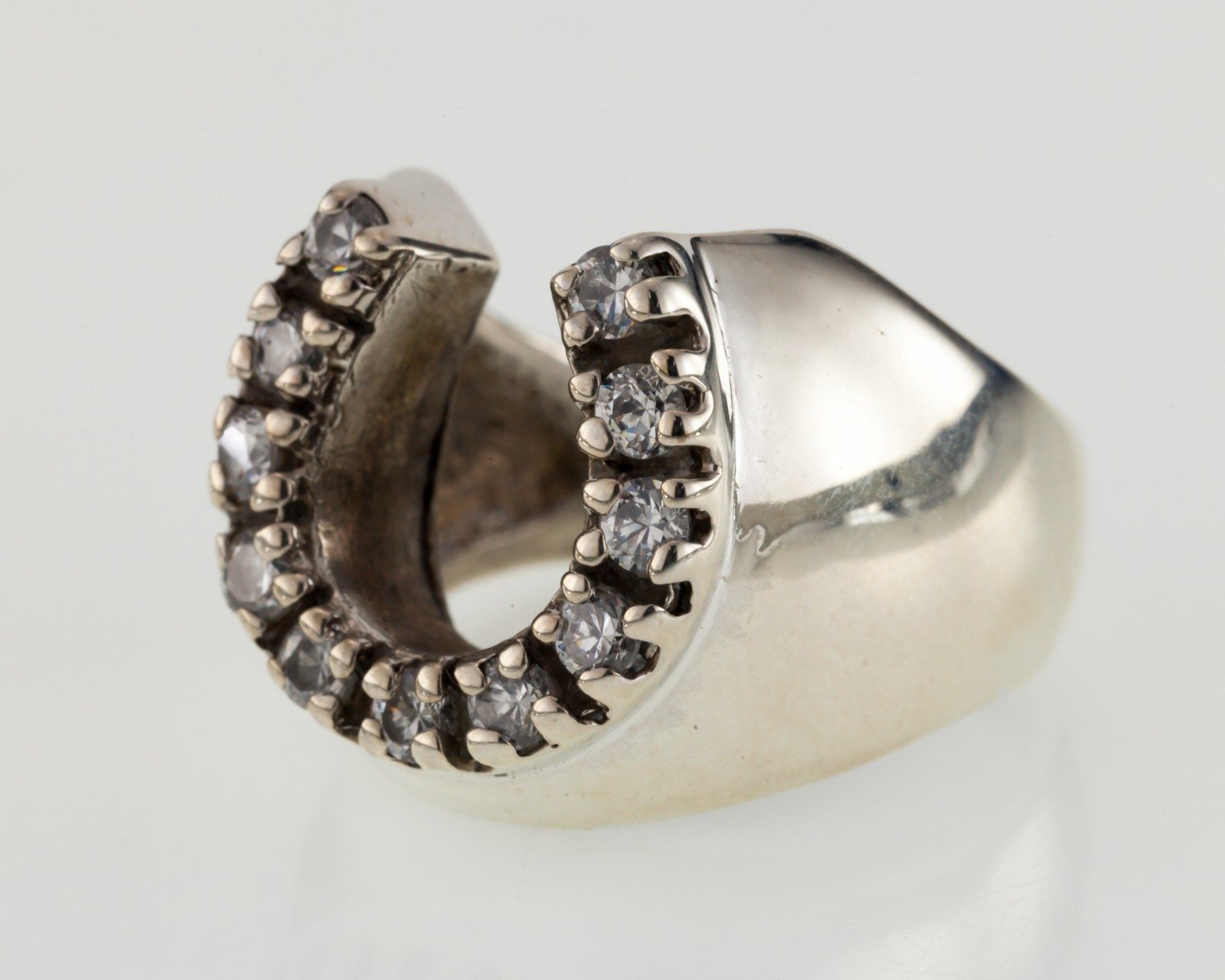- Lucky Horseshoe Sterling Silver Cubic Zirconia Novelty Ring - Size 7