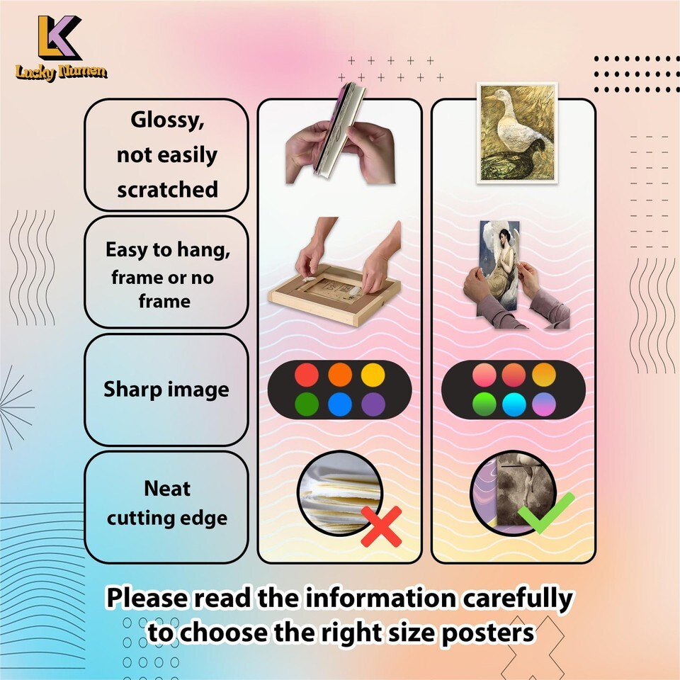 Our set of 40 pcs wall art come in standard sizes: 40 pcs 4"x6" making them easy to frame and display. Transform your walls into an art gallery with our collection of high-quality prints and posters.