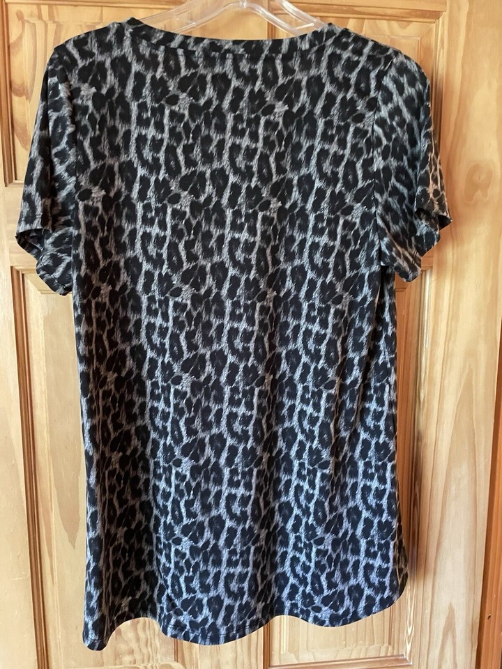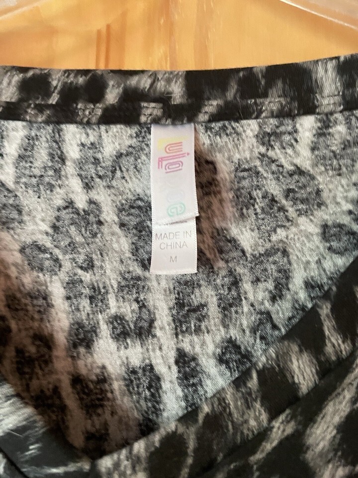 This LuLaRoe short sleeve top is a must-have for any fashion-forward woman. The animal print pattern and multicolor design make it a perfect addition to any outfit. With a size medium and regular size type, this top is sure to fit comfortably and flatter any figure.