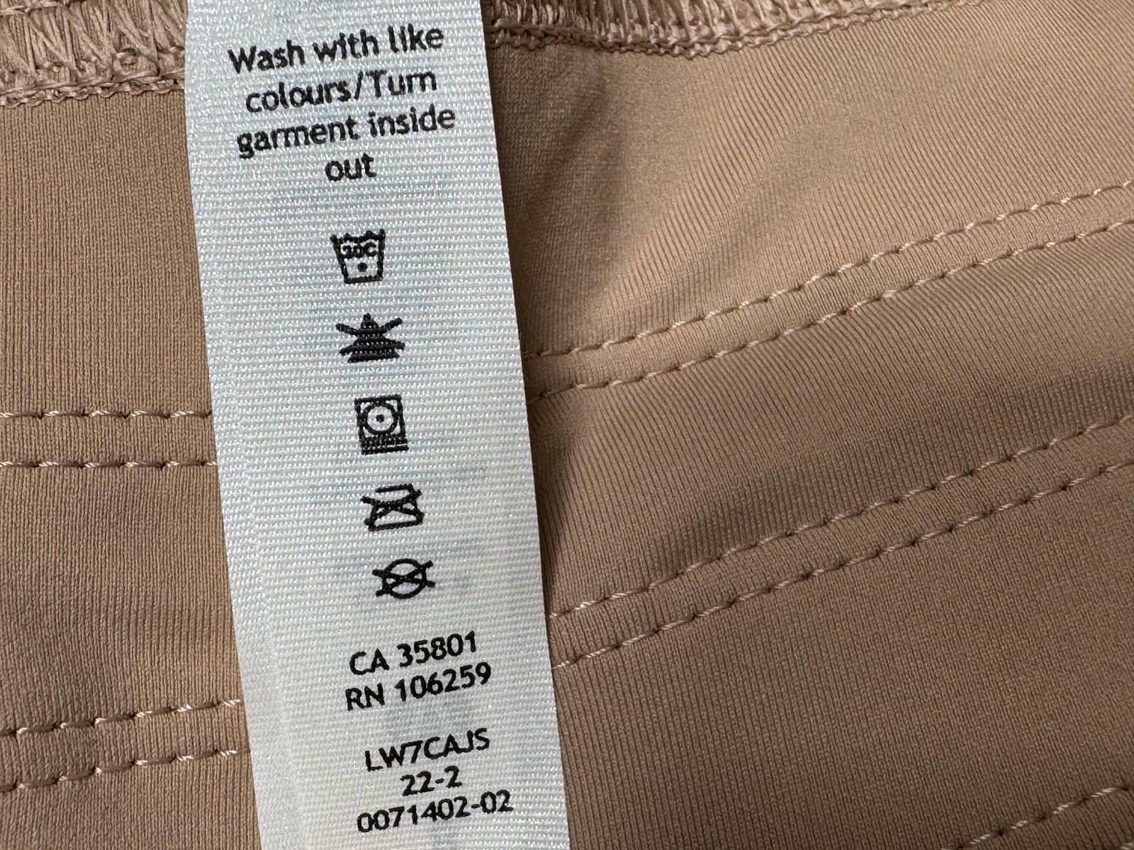 Fabric (from tag): Body 65% recycled nylon, 30% nylon, 5% elastane; Pockets 100% nylon; Waistband 87% nylon, 13% LYCRA elastane; Pocket lining 91% nylon, 9% elastane; Exclusive of decoration