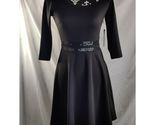 - Lulus Womens Fit & Flare Dress 3/4 Sleeve Sheer Waist Boat Neck Black Size M