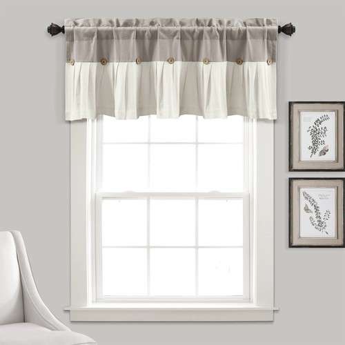 - Lush Decor Linen Button Farmhouse Valance, 52" W x 18" L, Linen - Kitchen