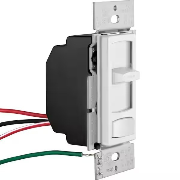 The Contour LED+ dimmer switch provides optimal dimming performance of LED bulbs. This dimmer switch works with up to 150-Watt of dimmable LED/CFL or 600-Watt of incandescent/halogen, allowing you to control multiple bulb types on the same circuit. It is designed to control a broad range of dimmable LED and CFL bulbs from a variety of brands including Philips, Cree, GE, EcoSmart and Lighting Science. The Contour dimmer switch features a smooth slide, captive knob to adjust your light to any activity. Use the rocker switch to turn your lights off or on returning the lights to your favorite level. Coordinating Claro wall plate sold separately.