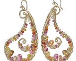 Hammered paisley shapes wrapped with pink ruby, sapphire, citrine, and mandarin garnet, about 2".