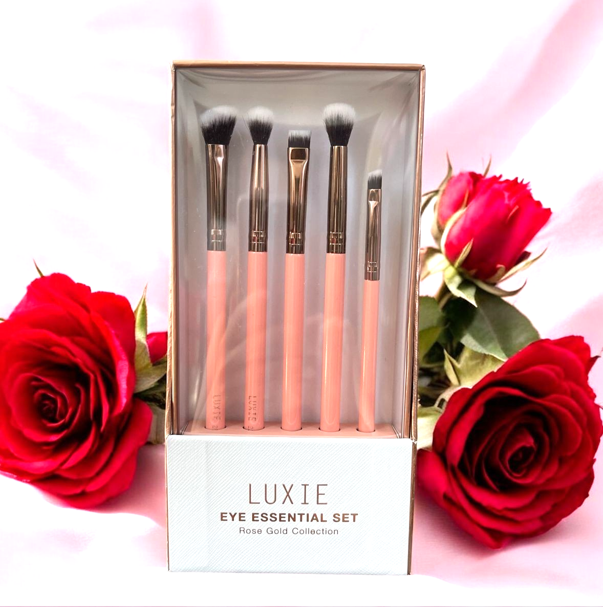 - Luxie 5-Pc. Rose Gold Eye Essential Brush Set Value: $74.00